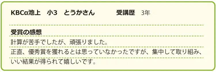FLENSカップ2025において入賞された生徒さん、殿堂入りの生徒さんからコメントをいただきました。