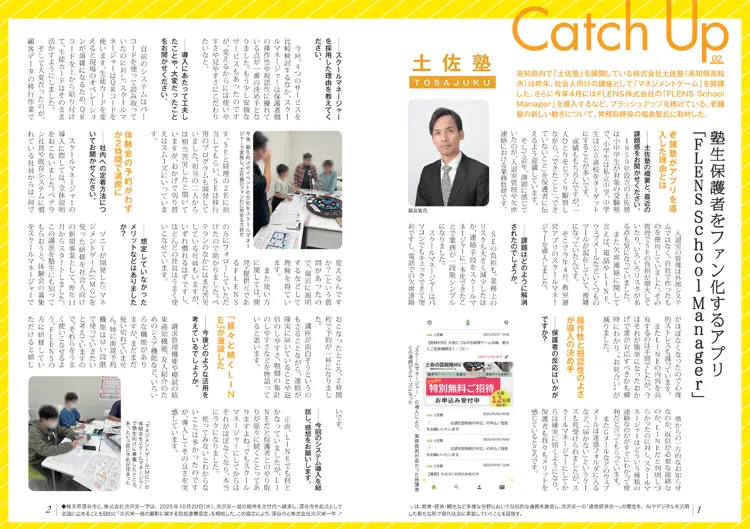 【土佐塾様】『私塾界2025年12月号掲載』Catch UP 塾生保護者をファン化するアプリ「FLENS School Manager」