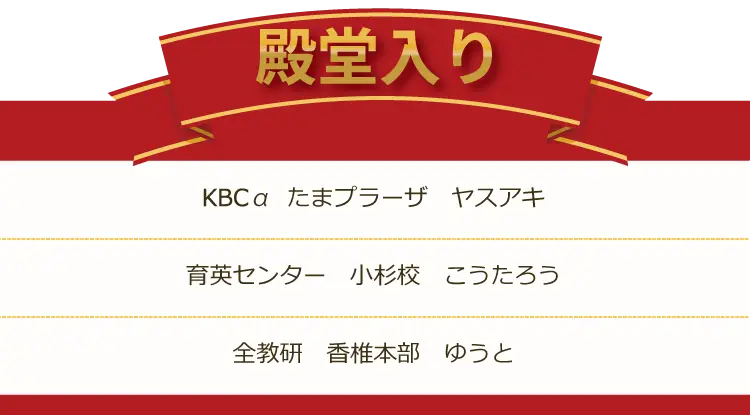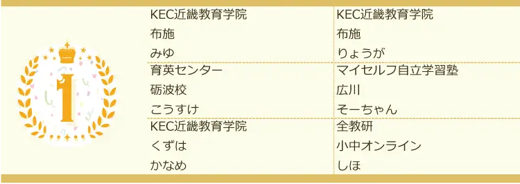 各講座で3回以上1位を獲得した生徒を掲載。